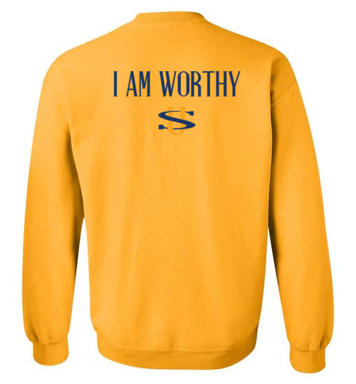 I AM WORTHY BLUE LETTERS GILDAN SWEATSHIRT