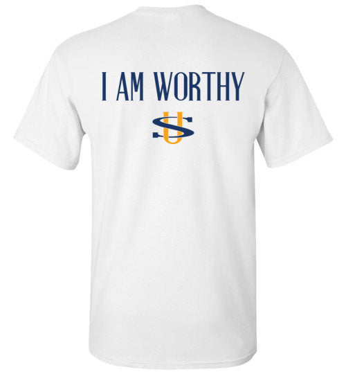 I AM WORTHY WHITE LETTERS GILDAN SHORT SLEEVE