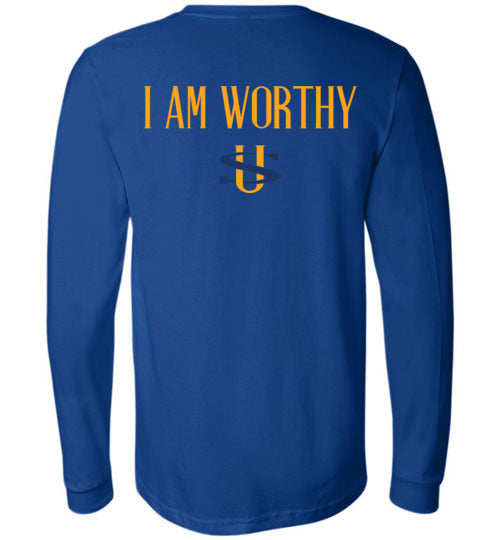 I AM WORTHY WHITE LETTERS CANVAS LONG SLEEVE