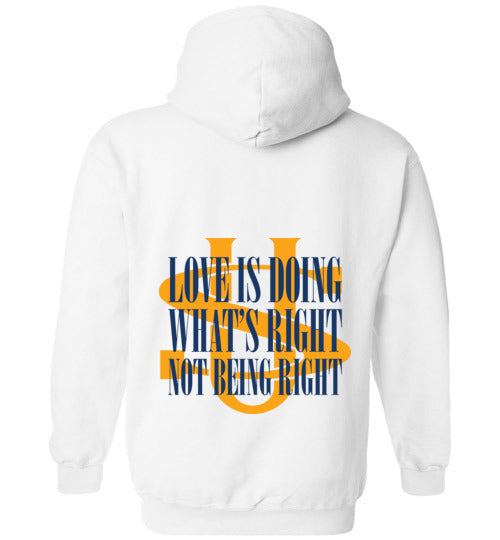 LOVE IS DOING WHAT'S RIGHT GILDAN HOODIE