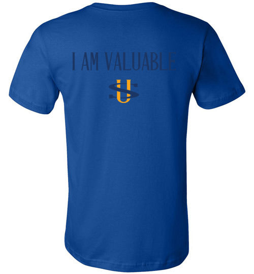I AM VALUABLE BLUE LETTERS CANVAS UNISEX T-SHIRT