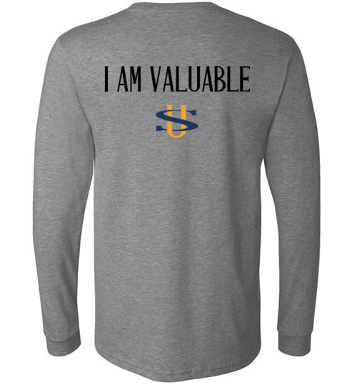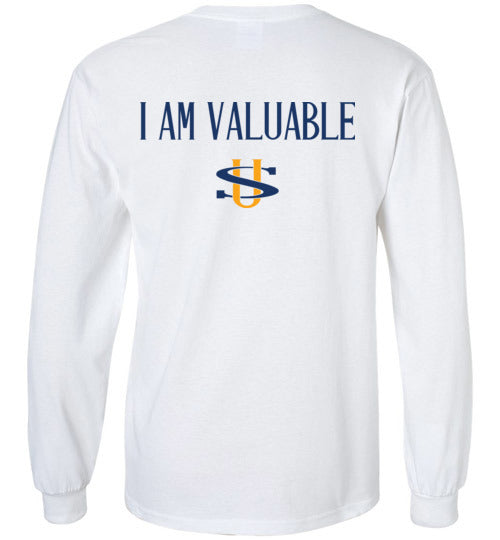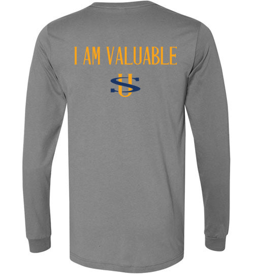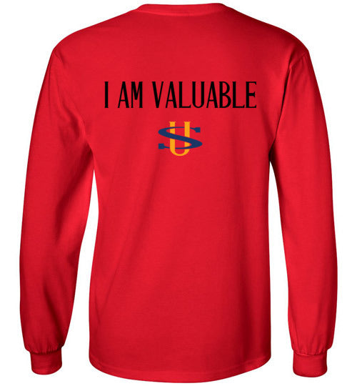 I AM VALUABLE BLACK LETTERS GILDAN LONG SLEEVE