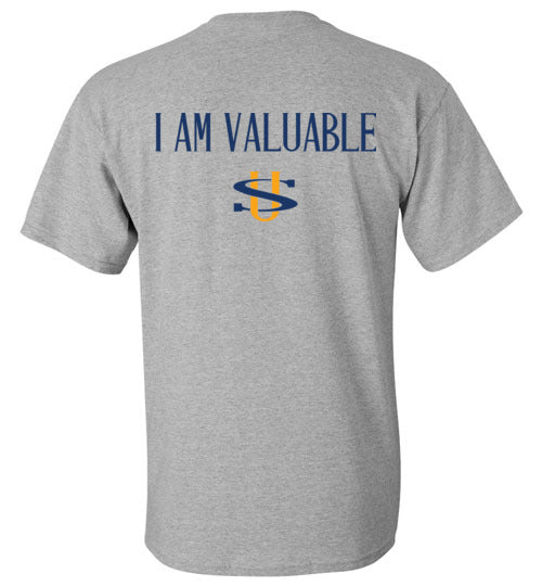 I AM VALUABLE BLUE LETTERS GILDAN SHORT SLEEVE