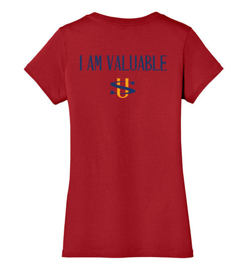 I AM VALUABLE BLACK LETTERS DISTRICT LADIES V-NECK