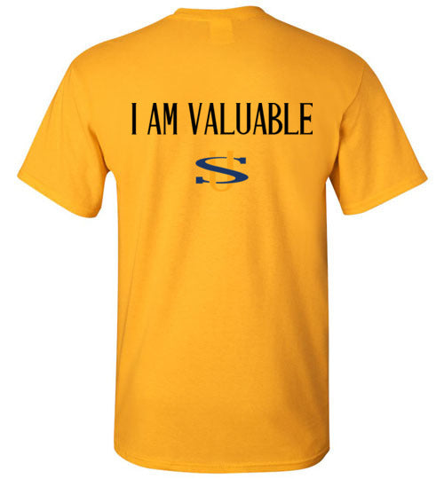 I AM VALUABLE BLACK LETTERS GILDAN SHORT SLEEVE
