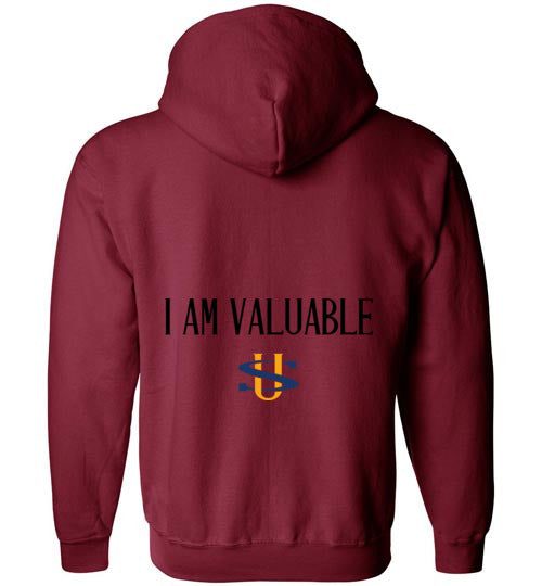 I AM VALUABLE BLACK LETTERS GILDAN ZIP HOODIE
