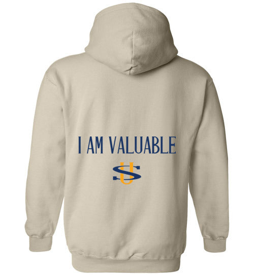I AM VALUABLE BLACK LETTERS GILDAN HOODIE
