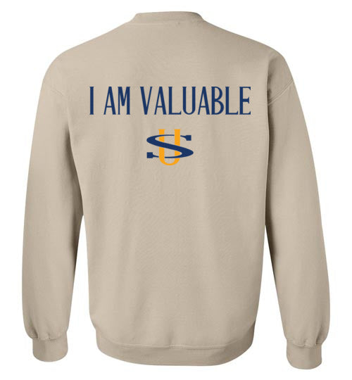 I AM VALUABLE BLACK LETTERS GILDAN SWEATSHIRT