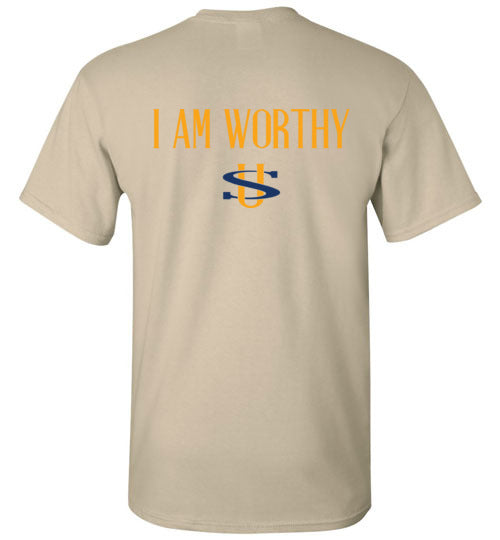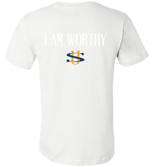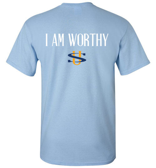 I AM WORTHY WHITE LETTERS GILDAN SHORT SLEEVE