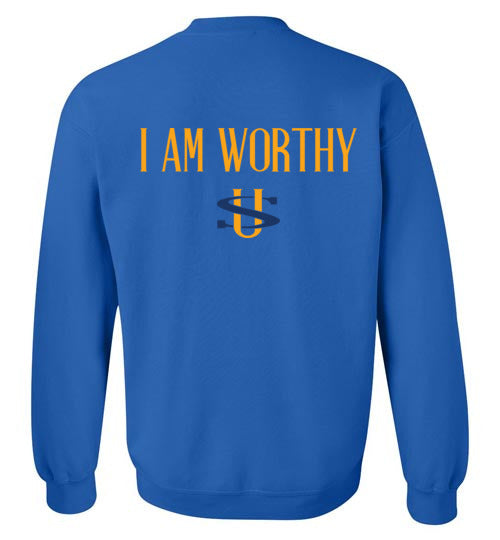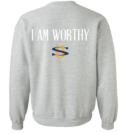 I AM WORTHY WHITE LETTERS GILDAN SWEATSHIRT