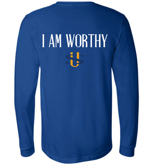 I AM WORTHY WHITE LETTERS CANVAS LONG SLEEVE